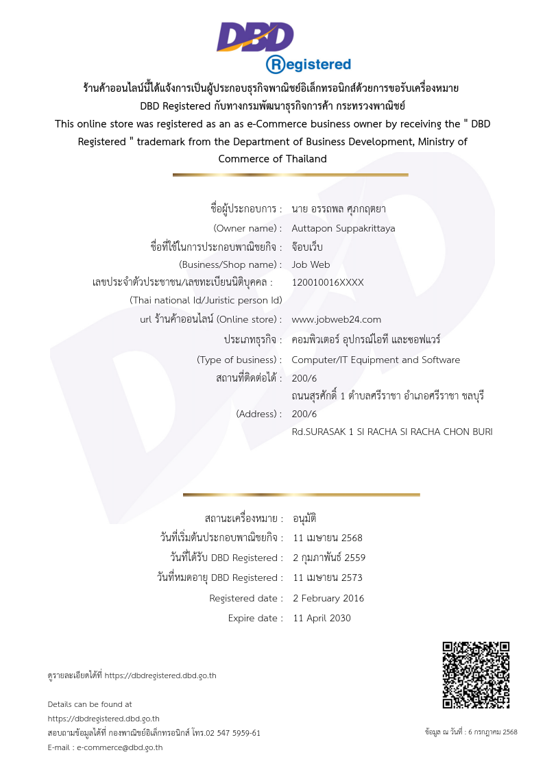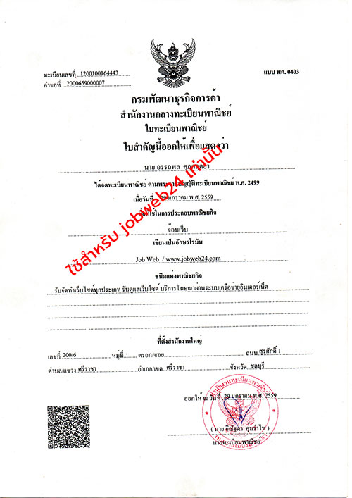 เราจึงได้ทำการจดทะเบียนพาณิชย์อิเล็กทรอนิกส์กับทางกรมพัฒนาธุรกิจการค้า กระทรวงพาณิชย์ เรียบร้อยแล้ว